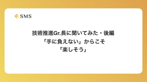 エス・エム・エス テックブログ運営の小林と樽本です。今回の記事は技術推進グループ長に聞いてみた・前編 「全社横断の技術アドバイザー」の後編となります。 光宗朋宏 Tomohiro Mitsumune -技術推進グループ グループ長 Ex. DeNA 面接においてどういうこと…